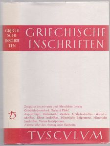 Bild Griechische Inschriften als Zeugnisse des privaten und öffentlichen Lebens. Griechisch-deutsch ed. Gerhard Pfohl. München, Heimeran, s.d.. 8vo. 252 S. OLwd. m. RSchild. sowie Orig.-Schutzumschlag. <Nr. 32051>