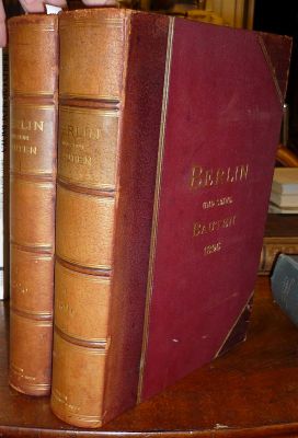 Berlin und seine Bauten. Bearbeitet und hrsg. vom Architekten-Verein zu Berlin u. der Vereinigung Berliner Architekten. 3 Teile in 2 Bänden. Berlin, Wilhelm Ernst & Sohn, 1896. Folio. Mit 2150 Abb. im Text, 19 Taf. u. 3 (statt 4) mehrf. gef. Plänen. 8 Bl., LXXXVIII, 680 S.; 5 Bl., VIII, 577 S., 2 Bl., 296 S. OHldr. m. goldgeprägt. Deckel- u. Rückentitel. <Nr. 32212>