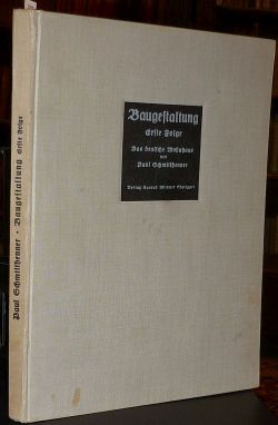 Schmitthenner, Paul. Baugestaltung. Erste Folge (mehr nicht erschienen): Das deutsche Wohnhaus. 2., vermehrte Auflage. Stuttgart, Konrad Wittwer, 1940. Folio. Mit 120 Zeichnungen u. 108 Lichtbildern. 4 Bl., 187 S. OLwd. m. Deckelschild. u. Rückentitel. <Nr. 32222>