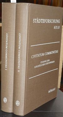 Bild Civitatum Communitas. Studien zum europäischen Städtewesen. Festschrift Heinz Stoob zum 65. Geburtstag. Hrsg. v. Helmut Jäger, Franz Petri, Heinz Qurin. Teil 1-2 in 2 Bänden. Köln, Wien, Böhlau, 1984. 4to. Mit Portrait des Jubilars, zahlr. Abb. u. 4 mehrf. gef. farbigen losen Beilagen. XL, 455; IX S., S. (455)-904. OLwd. m. Deckel- u. Rückentitel. <Nr. 32270>