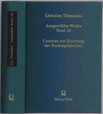 Bild Thomasius, Christian. Cautelen zur Erlernung der Rechtsgelehrtheit. (Nachdruck der Ausgabe Halle 1713). Hrsg. u. mit einem Vorwort versehen von Friedrich Vollhardt. Personen- u. Sachregister von Stefanie Kießling. Hildesheim, Zürich, New York, Georg Olms, 2006. Gr.-8vo. XXXVI S., 18 Bl., 553 S., 23 Bl., 60 S. OLwd. m. goldgeprägt. Deckel- u. Rückentitel. <Nr. 31892>